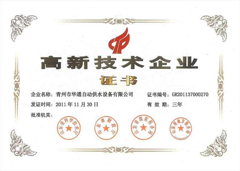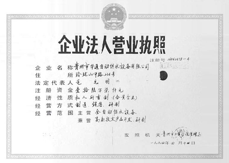 公司前身青州市华通自动供水设备有限公司正式成立!成立伊始就制定了自主研发,独立创新的发展策略;并研发成功了首台变频供水设备;