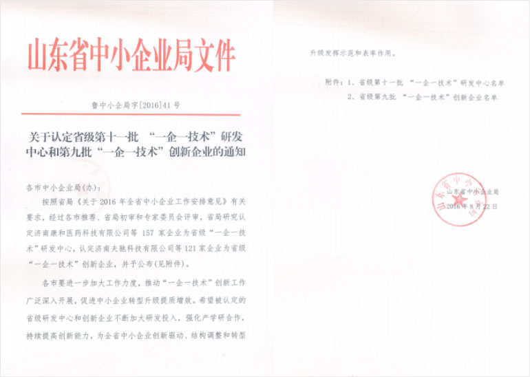 荣获"山东省专精特新"企业,标志着公司正式成为具备精细化、特色化、新颖化优势的中小企业。