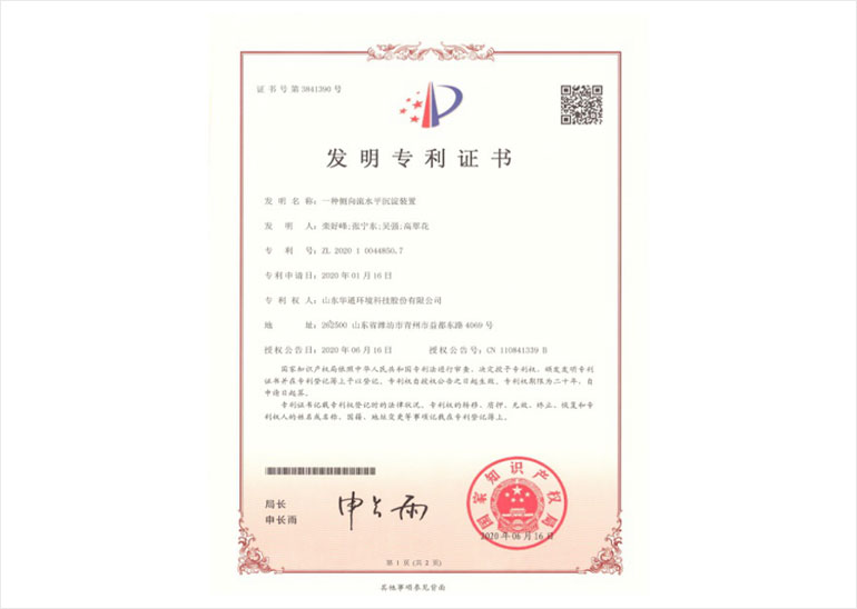 公司研发的“模块化净水厂系统”技术,荣获国家知识产权局的发明专利。